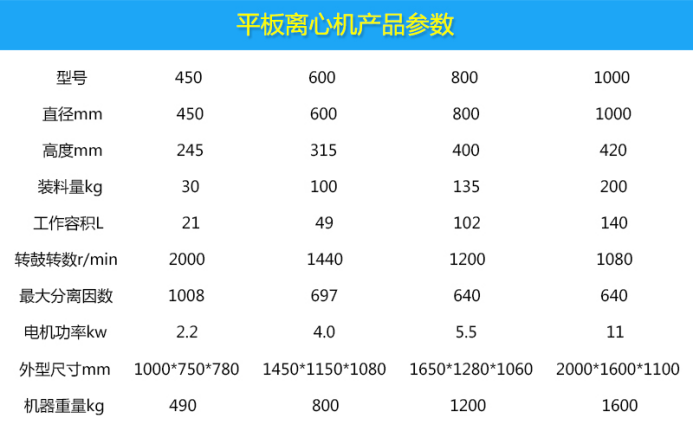 平板離心機適用于固相顆粒為晶體狀的懸浮物的過濾,分離含固相顆粒≥0.01,固含量10-40%的懸浮液,如粒狀、結晶狀或纖維狀物料的固液分離。